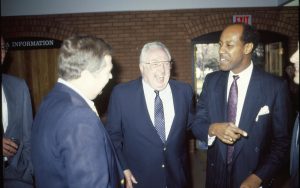 Two men talking to others in VC. Lincoln Home NHS- VIP Findley and Michel Visit award, visit, tour Two men talking to others in VC. Lincoln Home NHS- VIP Findley and Michel Visit award, visit, tour