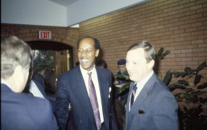 Two men standing in doorway. Lincoln Home NHS- VIP Findley and Michel Visit award, visit, reception Two men standing in doorway. Lincoln Home NHS- VIP Findley and Michel Visit award, visit, reception
