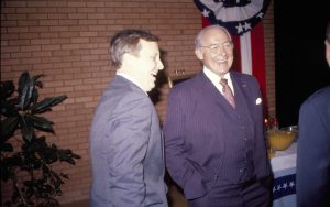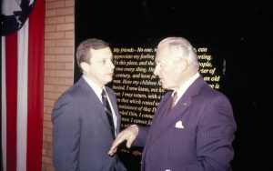 Two men laughing. Lincoln Home NHS- Paul Findley and Michel VIP visit, 117 Finley, Michel, visit Two men laughing. Lincoln Home NHS- Paul Findley and Michel VIP visit, 117 Finley, Michel, visit