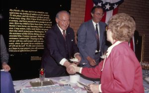 Two men cutting cakes. Lincoln Home NHS- VIP Findley and Michels Visit award, visit, ceremony Two men cutting cakes. Lincoln Home NHS- VIP Findley and Michels Visit award, visit, ceremony