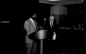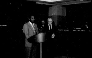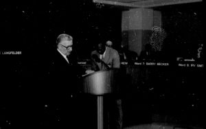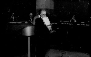 Man speaking at podium. Lincoln Home NHS- City Council Ollie Christmas Award, 133 Award, program Man speaking at podium. Lincoln Home NHS- City Council Ollie Christmas Award, 133 Award, program