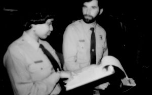 Two rangers looking at a clip board Lincoln Home NHS- Paul Findley and Michel VIP visit, 129 Finley, Michel, visit, tour Two rangers looking at a clip board Lincoln Home NHS- Paul Findley and Michel VIP visit, 129 Finley, Michel, visit, tour