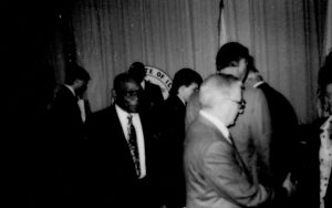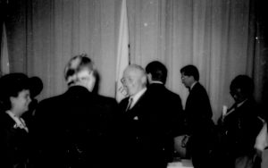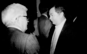 Two men talking (not a good picture). Lincoln Home NHS- Paul Findley and Michel VIP visit, 129 Finley, Michel, visit, reception Two men talking (not a good picture). Lincoln Home NHS- Paul Findley and Michel VIP visit, 129 Finley, Michel, visit, reception