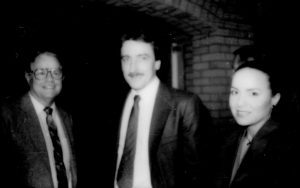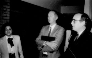 Two men and a lady posing for picture. Lincoln Home NHS- Paul Findley and Michel VIP visit, 129 Finley, Michel, visit, reception Two men and a lady posing for picture. Lincoln Home NHS- Paul Findley and Michel VIP visit, 129 Finley, Michel, visit, reception