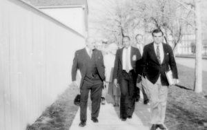 Men walking down board walk beside home. Lincoln Home NHS- Paul Findley and Michel VIP visit, 127 Finley, Michel, visit, tour Men walking down board walk beside home. Lincoln Home NHS- Paul Findley and Michel VIP visit, 127 Finley, Michel, visit, tour