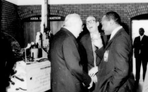 Two men and a lady posing for picture. Lincoln Home NHS- Paul Findley and Michel VIP visit, 121 Finley, Michel, visit, reception Two men and a lady posing for picture. Lincoln Home NHS- Paul Findley and Michel VIP visit, 121 Finley, Michel, visit, reception