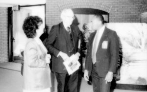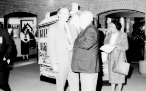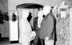 Two men and a lady talking. Lincoln Home NHS- Paul Findley and Michel VIP visit, 121 Finley, Michel, visit, reception Two men and a lady talking. Lincoln Home NHS- Paul Findley and Michel VIP visit, 121 Finley, Michel, visit, reception
