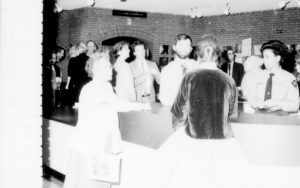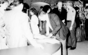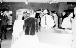 People at information desk. Lincoln Home NHS- Paul Findley and Michel VIP visit, 121 Finley, Michel, visit, reception People at information desk. Lincoln Home NHS- Paul Findley and Michel VIP visit, 121 Finley, Michel, visit, reception
