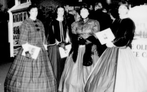 Four ladies in period dress. Lincoln Home NHS- Paul Findley and Michel VIP visit, 121 Finley, Michel, visit, reception, period dress Four ladies in period dress. Lincoln Home NHS- Paul Findley and Michel VIP visit, 121 Finley, Michel, visit, reception, period dress