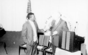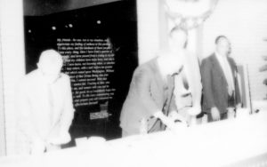 Washed out picture. Lincoln Home NHS- Paul Findley and Michel VIP visit, 121 Finley, Michel, visit, reception Washed out picture. Lincoln Home NHS- Paul Findley and Michel VIP visit, 121 Finley, Michel, visit, reception