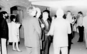 Group of men standing standing, talking. Washed out. Lincoln Home NHS- Paul Findley and Michel VIP visit, 121 Finley, Michel, visit, reception Group of men standing standing, talking. Washed out. Lincoln Home NHS- Paul Findley and Michel VIP visit, 121 Finley, Michel, visit, reception