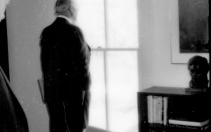 Man standing and looking out window. Lincoln Home NHS- Paul Findley and Michel VIP visit, 115 Finley, Michel, tour, visit Man standing and looking out window. Lincoln Home NHS- Paul Findley and Michel VIP visit, 115 Finley, Michel, tour, visit