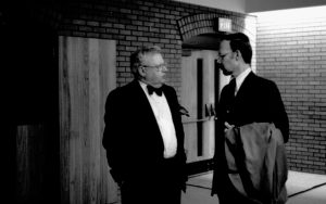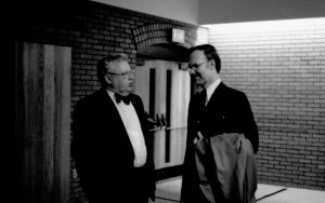 Two men conversing. Lincoln Home NHS- Paul Findley visit to LIHO Finley, visit, banquet, ceremony Two men conversing. Lincoln Home NHS- Paul Findley visit to LIHO Finley, visit, banquet, ceremony