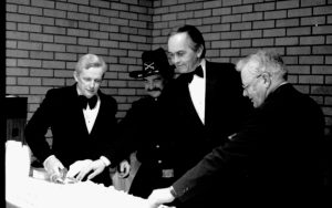 Three men in tuxedos standing. Lincoln Home NHS- Paul Findley visit to LIHO Finley, visit, reception Three men in tuxedos standing. Lincoln Home NHS- Paul Findley visit to LIHO Finley, visit, reception