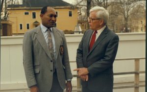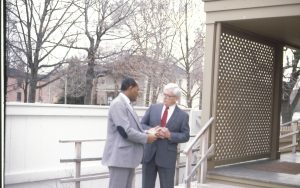 Two men conversing. Lincoln Home NHS- Paul Findley Recognition Award, 4314 Finley, award Two men conversing. Lincoln Home NHS- Paul Findley Recognition Award, 4314 Finley, award