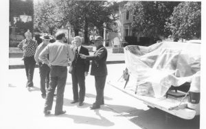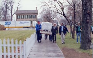 Men carrying wrapped furniture down board walk. Lincoln Home NHS- Bring Furniture Back Home furniture, conference, cradle Men carrying wrapped furniture down board walk. Lincoln Home NHS- Bring Furniture Back Home furniture, conference, cradle