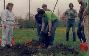 Digging a hole to plant tree. Lincoln Home NHS- Earth Day 1989 Earth Day, tree, planting Digging a hole to plant tree. Lincoln Home NHS- Earth Day 1989 Earth Day, tree, planting