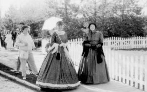 Two ladies in period dress on board walk Lincoln Home NHS- Paul Findley and Michel VIP visit, 123 Finley, Michel, visit Two ladies in period dress on board walk Lincoln Home NHS- Paul Findley and Michel VIP visit, 123 Finley, Michel, visit