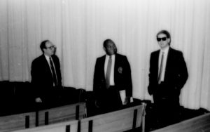 Three men standing in front of curtain. Lincoln Home NHS- Paul Findley and Michel VIP visit, 123 Finley, Michel, visit, reception Three men standing in front of curtain. Lincoln Home NHS- Paul Findley and Michel VIP visit, 123 Finley, Michel, visit, reception
