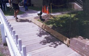 Dean House, Tom nailing boardwalk Lincoln Home NHS- Dean House, HS-13, roll 2000-7 exp 23 Dean House, boardwalk Dean House, Tom nailing boardwalk Lincoln Home NHS- Dean House, HS-13, roll 2000-7 exp 23 Dean House, boardwalk