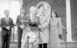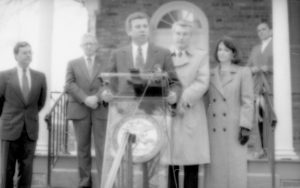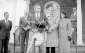 Lincoln Home NHS- Artisans Shop Ceremony ribbon cutting Looking east from 8th toward Conference Center artisan, ceremony, shop, VIP Lincoln Home NHS- Artisans Shop Ceremony ribbon cutting Looking east from 8th toward Conference Center artisan, ceremony, shop, VIP