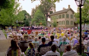 People seated listening to Coast Guard band with Lincoln home in background. Lincoln Home NHS- Coast Guard Band Concert, 267618 concert, Coast Guard People seated listening to Coast Guard band with Lincoln home in background. Lincoln Home NHS- Coast Guard Band Concert, 267618 concert, Coast Guard