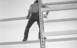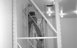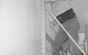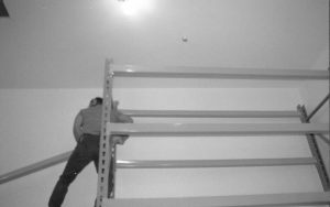 storage shelves built and installed along the North wall in the Arnold Barn facility Lincoln Home NHS, CRS Collection Move, North wall, Arnold Barn, Roll N11, exp 4, sheet 1 of 5 Arnold Barn, move, storage