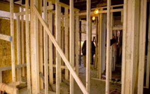 Interior of Sprigg House under construction Lincoln Home NHS, East wall Northeast corner in room 103, Roll N5, exp 7, sheet 1 of 2 LIHO, Sprigg, consturction