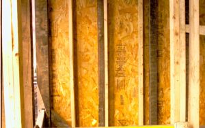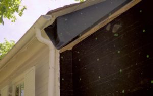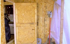 West wall. Connectin between rooms 104 and 105 conice and roof details. Tar paper applied Lincoln Home NHS, roll N9 Corneau, Arnold Barn, Sprigg renovation, cornice