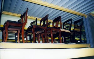Chairs held in collection; N2 storage space Lincoln Home NHS, 1998 CRS Collection Move, Roll N7, exp 19 sheet 7 of 9 Arnold Barn, storage room, furnishings