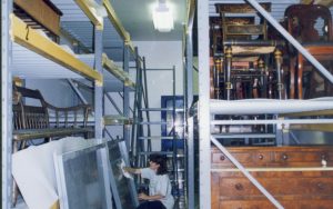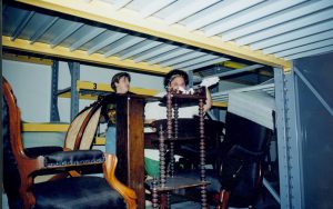 Whatnot, podium, chairs, etc. held in collection; K3 storage space Lincoln Home NHS, 1998 CRS Collection Move, Roll N7, exp 20 sheet 7 of 9 Arnold Barn, storage room, furnishings