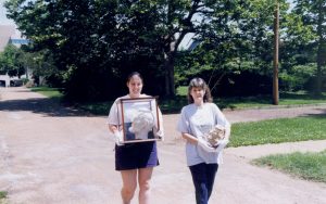 Preparing/cleaning map-case drawers for use in new location. Drawers awaiting use, stacked in South aisle Lincoln Home NHS, CRS Artifacts Move, Roll N13, exp 5 sheet 2 of 6 Arnold Barn, storage room, artifacts