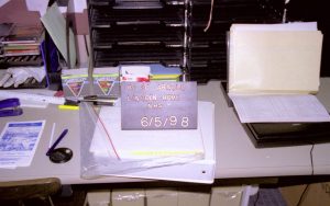 Members of maintenance moving piano from East alley onto the Arnold Lot in preparation to move into barn storage space. Boardwalk and building entrance are on South side of the barn Lincoln Home NHS, 1998 CRS Collection Move, East end of lot, Roll N7, exp 14 sheet 5 of 9 Carriage House, storage room