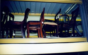 Chairs held in collection; N2 storage space Lincoln Home NHS, 1998 CRS Collection Move, Roll N7, exp 18 sheet 6 of 9 Arnold Barn, storage room, furnishings