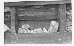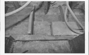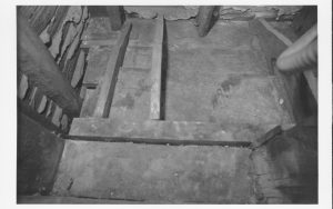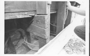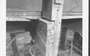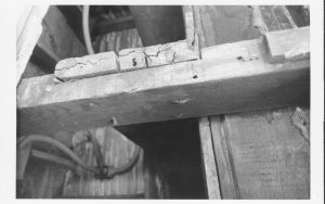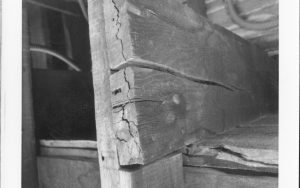 photos of front porch ceiling, below and of interior framing between porch ceiling and 2nd floor joists Lincoln Home NHS, renovation renovation, investigation
