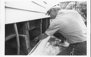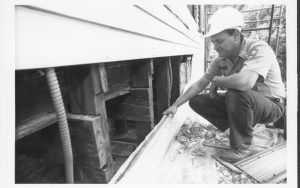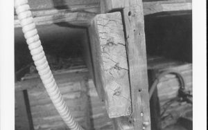 photos of front porch ceiling, below and of interior framing between porch ceiling and 2nd floor joists Lincoln Home NHS, renovation, outer wall renovation, investigation