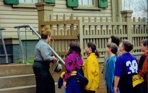 Park Technicians, Rhonda Cravens, orients visitors to Lincoln Home 15 Interpretive Programs Park Technicians, Rhonda Cravens, orients visitors to Lincoln Home 15 Interpretive Programs