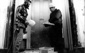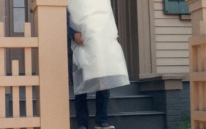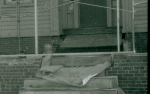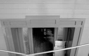 The familiar name plate on the front door of Lincoln's Home has been left in place despite the extensive renovation project which is currently taking place on the home. Architect Vance Kaminski, Project Supervisor for the National Park Service, and Richar Lincoln, Home, restoration, front, door, name, plate
