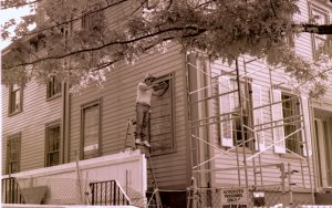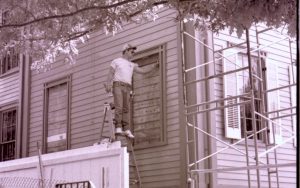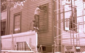 NA 8 Lincoln Home, Restoration, Southeast Side, Scaffolding, Workers NA 8 Lincoln Home, Restoration, Southeast Side, Scaffolding, Workers