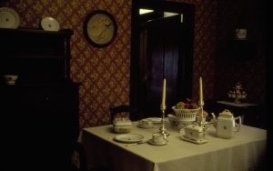 NA 2A.4 Lincoln, home, Dining Room, table, china, candles NA 2A.4 Lincoln, home, Dining Room, table, china, candles