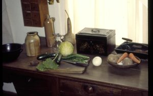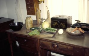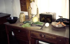 Vegetables on cutting board on table in kitchen. Lincoln Home NHS- Christmas in Lincoln Home 1997, HS-20 Film Roll #17 Christmas, decorations Vegetables on cutting board on table in kitchen. Lincoln Home NHS- Christmas in Lincoln Home 1997, HS-20 Film Roll #17 Christmas, decorations