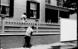 NA Lincoln, Home, Restoration, Exterior, South Fence, Workers NA Lincoln, Home, Restoration, Exterior, South Fence, Workers