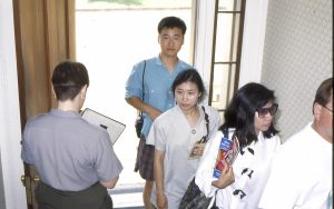 Park ranger admitting visitors into enterance hall. Lincoln Home NHS- Lincoln Festival Lincoln Festival, tour Park ranger admitting visitors into enterance hall. Lincoln Home NHS- Lincoln Festival Lincoln Festival, tour