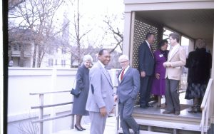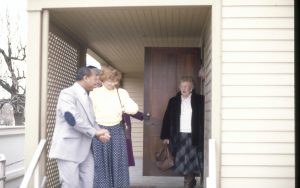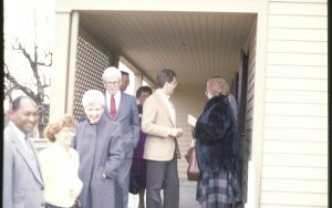 Group on side porch of Lincoln home. Lincoln Home NHS- City Council Ollie Christmas Award Michel, tour, visit, porch Group on side porch of Lincoln home. Lincoln Home NHS- City Council Ollie Christmas Award Michel, tour, visit, porch
