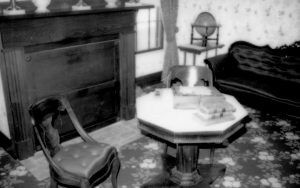 Rear parlor picture of chair's and table next to fire place. Lincoln Home NHS- Lincoln Birthday Postal Ceremony, 86353 birthday, Lincoln Home Rear parlor picture of chair's and table next to fire place. Lincoln Home NHS- Lincoln Birthday Postal Ceremony, 86353 birthday, Lincoln Home