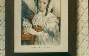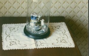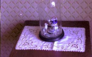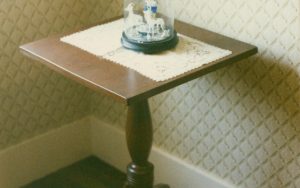 NA #12 Lincoln, Home, stair hall, figurine under glass, table NA #12 Lincoln, Home, stair hall, figurine under glass, table