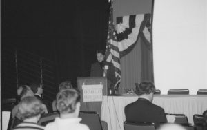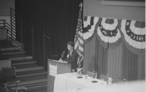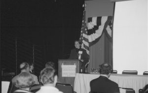 Man speaking at podium, looking down at notes. 1999-16; 25 Colloquium, 1999 Man speaking at podium, looking down at notes. 1999-16; 25 Colloquium, 1999