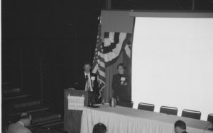 Man and woman at podium. 1999-16; 28 Colloquium, 1999 Man and woman at podium. 1999-16; 28 Colloquium, 1999