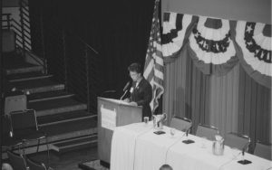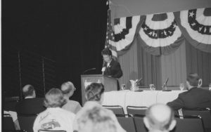 Lady speaking at podium. 1999-16; 26 Colloquium, 1999 Lady speaking at podium. 1999-16; 26 Colloquium, 1999