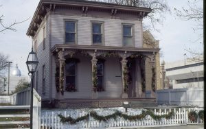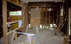 Standing in South entrance, looking East into East room; Northeast corner in left-center of photo Lincoln Home NHS, CRS Artifacts Move, Roll N13, exp 18 Sprigg House, porch, renovation